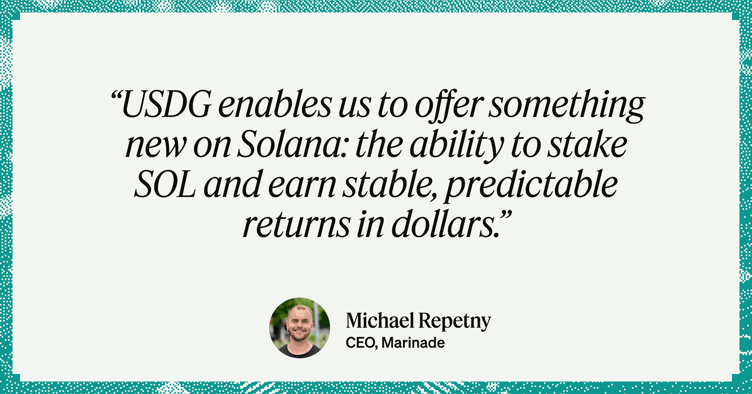 The economics also matter. As a GDN member, Marinade earns rewards generated from USDG’s reserve assets, creating a sustainable engine for funding its ecosystem. And because GDN includes leading exchanges, custodians, and protocols, the USDG rewards users receive are liquid, transferable, and widely usable across Solana.